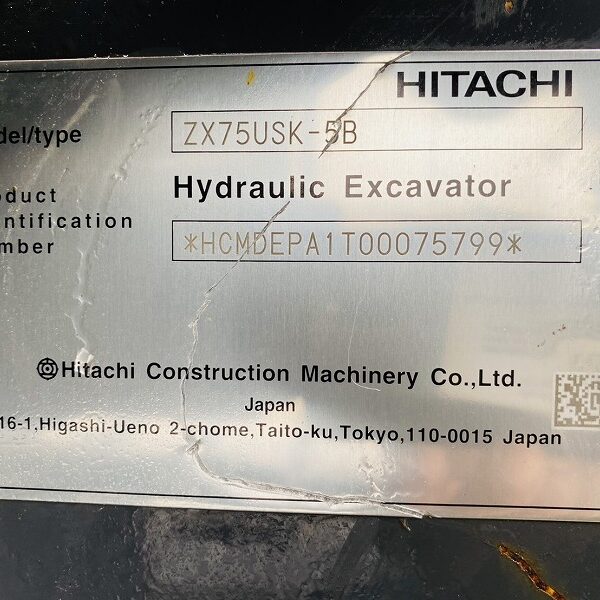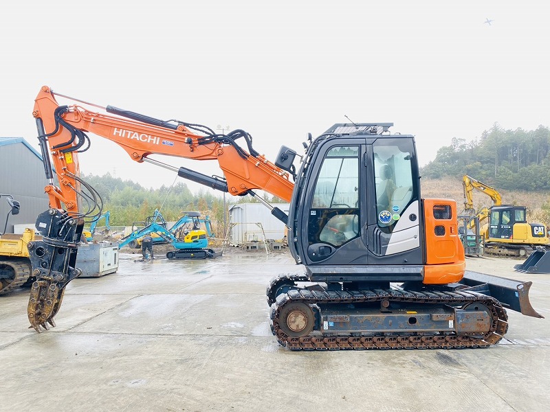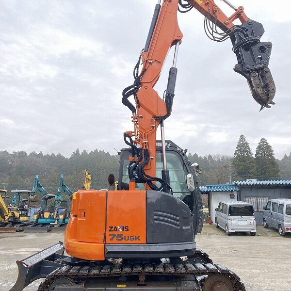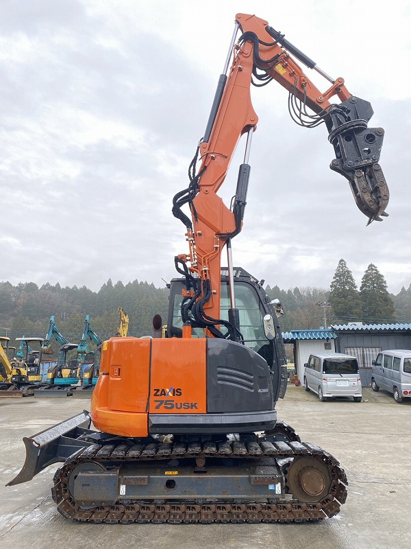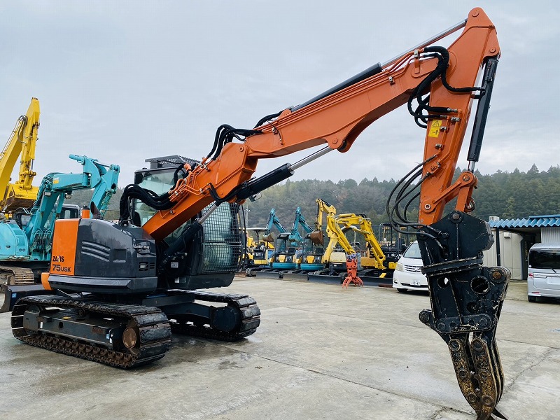 ZX75USK-5B ツーピースブーム 5本配管仕様 旋回式フォーク付 ローアワー高年式 排土板付き バケット 日立建機